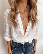 SPECIFICATIONS Top Type: Blouses Style: Casual Material: A: 100% Cotton B: 100% Polyester Occasion: Daily Neckline: V neck_V Pattern Type: Solid Color Sleeve Type: Regular sleeve Sleeve Length: Long Sleeve Fit Type: Regular Season: Fall,Winter Details: Patchwork,Lace Package Includes: 1 x Blouse SIZE TABLE Size Bust Length C...