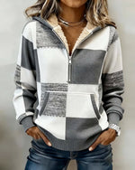 Patchwork Long-Sleeved Pocket Sweatshirt