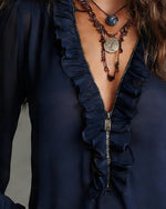 Casual Pleated Solid Color Blouse