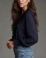 Ruffle Flared Sleeve Hollow Out Lace Blouse