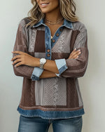 Long-Sleeved Denim Patchwork Shirt