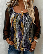 Faux Two-Piece Printed Long-Sleeved Blouse