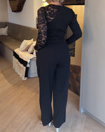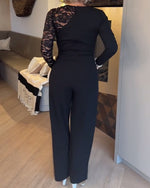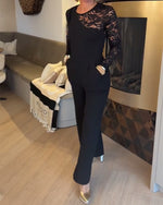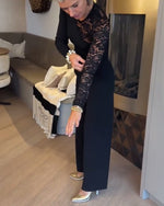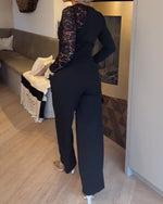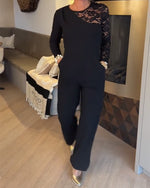 Lace Paneled Long-Sleeved V-Neck Blouse