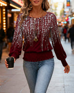 Plush Christmas Print Long Sleeve Top