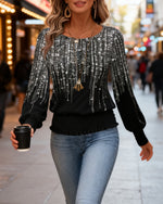 SPECIFICATIONS Top Type: Tops Style: Casual Material: Velvet Occasion: Daily Neckline: Draped Collar Pattern Type: Sequin Sleeve Type: Regular sleeve Sleeve Length: Long Sleeve Fit Type: Regular Season: Fall,Winter Package Includes: 1 x Top SIZE TABLE Size Bust Length CM INCH CM INCH S 97 38.19 65 25.59 M 101 39.76 66.5 26.18 ...