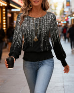 Icon1 Round Neck Fashionable Printed Long-Sleeved Top
