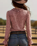 NEW Icon1 Ruffled V-Neck Leopard Print Blouse