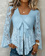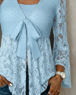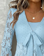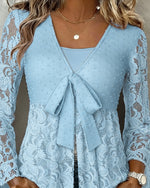 SPECIFICATIONS Top Type: Blouses Style: Casual Material: A: 100% Cotton B: 100% Polyester Occasion: Daily Neckline: V neck_V Pattern Type: Solid Color Sleeve Type: Regular sleeve Sleeve Length: Long Sleeve Fit Type: Regular Season: Fall,Winter Details: Patchwork,Lace Package Includes: 1 x Blouse SIZE TABLE Size Bust Length C...