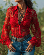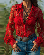 Fashionable Mesh Lotus Leaf Loose Blouse