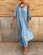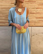 SPECIFICATIONS Style: Vacation,Elegant Category: Sets Material: Cotton Blends Pattern Type: Print Neckline: Round Neck Sleeve Type: Regular sleeve Sleeve Length: Half Sleeve Dress Length: Maxi Fit Type: Regular Season: Spring,Summer,Fall Occasion: Daily,Vacation Package Includes: 1 x Coat, 1 x Dress COAT SIZE TABLE Size Bust Length ...
