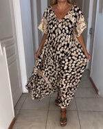 SPECIFICATIONS Style: Casual Material: Cotton Blends Dress Type: A-Line Dress Length: Maxi Neckline: V neck_V Pattern Type: Print Sleeve Type: Regular sleeve Sleeve Length: Short Sleeve Fit Type: Regular Season: Spring, Summer, Fall Occasion: Daily Package Includes: 1 x Dress SIZE TABLE Size Bust Length cm inch cm inch S 95...