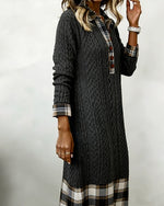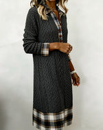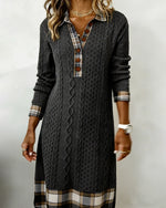 SPECIFICATIONS Style: Casual Material: Cotton Blends Dress Type: Shift dress Dress Length: Midi Neckline: Round Neck Pattern Type: Plaid Sleeve Type: Dropped shoulder Sleeve Length: Long Sleeve Details: Pocket Fit Type: Regular Season: Fall,Winter Occasion: Daily Package Includes: 1 x Dress SIZE TABLE Size  Bust  Length CM INCH CM I...