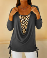 Fake Two-Piece Lace-Up Leopard Print T-Shirt