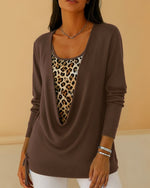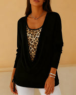Long-Sleeved Leopard Print Contrast Top