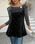Casual V-Neck Leopard Print Lace Panel Blouse