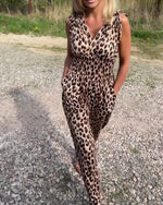 SPECIFICATIONS Style: Casual Category: Jumpsuits Material: Cotton Blends Pattern Type: Print,Leopard Neckline: V neck_V Sleeve Type: Regular sleeve Sleeve Length: Short Sleeve Pants Type: Conventional Pants Length: Short Waist Type: Mid Waist Fit Type: Regular Season: Spring,Summer Details: Buttons Occasion: Daily Package Includes: 1 x Jumpsui...