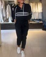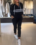 Hooded striped casual two-piece set