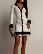 Stylish Solid Color V-Neck Dress