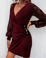SPECIFICATIONS Style: Elegant,Party Material:50% PU 50% Polyester Dress Type: A-Line Dress Length: Above-knee Neckline: V neck_V Pattern Type: Solid Color Sleeve Type: Regular sleeve Sleeve Length: Long Sleeve Details: Lace Up Fit Type: Regular Season: Spring,Fall,Winter Occasion: Daily,Party Package Includes: 1 x Dress SIZE TABLE ...