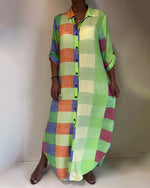 SPECIFICATIONS Style: Casual Material: Cotton Blends Dress Type: Shift dress Dress Length: Maxi Neckline: V neck_V Pattern Type: Color Block Sleeve Type: Regular sleeve Sleeve Length: 3/4 Sleeve Details: Pocket Fit Type: Regular Season: Spring,Summer Occasion: Daily Package Includes: 1 x Dress SIZE TABLE Size Bust Length CM INCH CM INCH...
