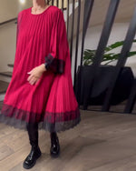SPECIFICATIONS Style: Elegant Material: Cotton Blends,Lace Dress Type: Shift dress Dress Length: Midi Neckline: Round Neck Pattern Type: Solid Color Sleeve Type: Dropped shoulder Sleeve Length: Long Sleeve Details: Slit,Lace Fit Type: Regular Season: Spring,Fall,Winter Occasion: Daily Package Includes: Cami Dress & Dress SIZE TABLE ...