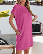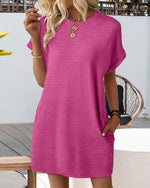 NEW Icon1 Round Neck Pocket Solid Color Dress