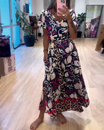 SPECIFICATIONS Style: Casual Material: Cotton Blends Dress Type: Shift dress Dress Length: Maxi Neckline: V neck_V Pattern Type: Color Block Sleeve Type: Regular sleeve Sleeve Length: 3/4 Sleeve Details: Pocket Fit Type: Regular Season: Spring,Summer Occasion: Daily Package Includes: 1 x Dress SIZE TABLE Size Bust Length CM INCH CM INCH...