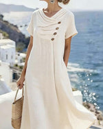 SPECIFICATIONS Style: Casual Material: Cotton Blends Dress Type: Shirt Dress Length: Maxi Neckline: V neck_V Pattern Type: Striped Sleeve Type: Dropped shoulder Sleeve Length: Short Sleeve Details: Slit Fit Type: Loose Season: Spring, Summer, Fall Occasion: Daily Package Includes: 1 x Dress SIZE TABLE (cm) Size Bust Length c...