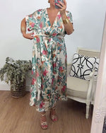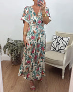 Botanical print v-neck twist elegant dress