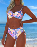 SPECIFICATIONS Style: Sexy Material: 15% Spandex,85% Polyester Occasion: Vacation Neckline: Halter Pattern Type: Print Top Type: Bikini Bra Type: Wireless Bra Bottom Type: Natural Fit Type: Regular Season: Spring,Summer Details: Drawstring Package Includes: 1 x Bikini SIZE TABLE Size Bust Waist Hip Under bust CM INCH CM INCH CM INCH CM INC...