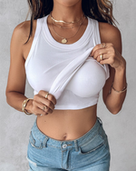 Built-in Bra Ribbed Round Neck Tank Top
