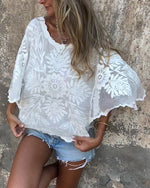 Aumora Butterfly Sleeve Round Neck Embroidered Blouse