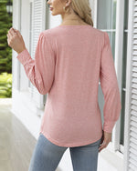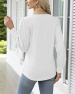 SPECIFICATIONS Top Type: Blouses Style: Casual Material: Velvet Occasion: Daily Neckline: V neck_V Pattern Type: Solid Color Sleeve Type: Regular sleeve Sleeve Length: 3/4 Sleeve Fit Type: Regular Season: Fall,Winter Details: Buttons,Shirred Package Includes: 1 x Blouse SIZE TABLE Size Bust Length CM INCH CM INCH S 97 38.19 65 2...