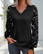 SPECIFICATIONS Top Type: Tops Style: Casual Material: Mesh,Sequins Occasion: Daily Neckline: V neck_V Pattern Type: Sequin,Leopard Sleeve Type: Puff Sleeve Sleeve Length: Long Sleeve Fit Type: Regular Season: Fall,Winter Details: Patchwork Package Includes: 1 x Top SIZE TABLE Size Bust Length CM INCH CM INCH S 97 38.19 65 25.59 ...