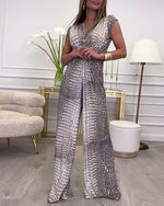 V-Neck Leopard Print Mesh Sequined Patchwork Top