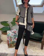 Loose-Fitting Velvet Three-Quarter Sleeve Blouse