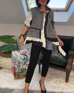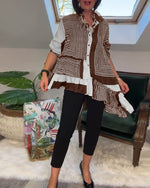 Ruffled Plaid Patchwork Faux Two-Piece Top