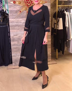 Lace-Trimmed Solid Color Long Dress