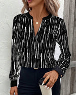 Metal Buckle V-Neck Long-Sleeved Top