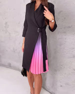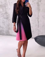 Fashionable lapel lace-up pleated dress