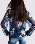 Ruffle-Hem Half-Zip Floral Print Blouse