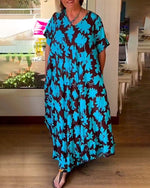 Floral print V-neck pocket loose dress