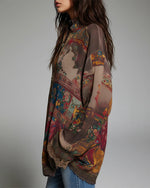 Fashionable Printed V-Neck Long-Sleeved Blouse