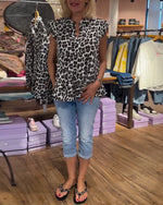 V-Neck Leopard Print Mesh Sequined Patchwork Top