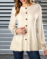 SPECIFICATIONS Category: Coats Style: Casual Material: Cotton Blends Occasion: Daily Neckline: V neck_V Pattern Type: Solid color Sleeve Type: Regular sleeve Sleeve Length: Long Sleeve Fit Type: Regular Season: Spring,Fall,Winter Details: Patchwork,Buttons,Lace Package Includes: 1 x Coat SIZE TABLE Size Bust Length CM INCH CM INCH S...