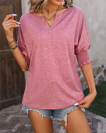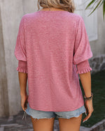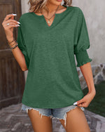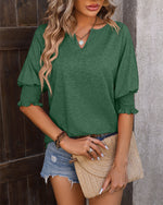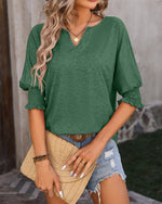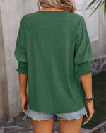 Loose-Fitting Velvet Three-Quarter Sleeve Blouse