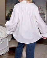 Ruffled Long-Sleeved Solid-Color Collared Blouse