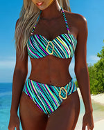 Metal-Buckle Design Floral Print Bikini