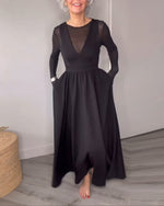 SPECIFICATIONS Style: Chic Material: Cotton Blends,Lace Dress Type: A-Line Dress Length: Maxi Neckline: Round Neck Sleeve Type: Regular sleeve Sleeve Length: Long Sleeve Details: Patchwork Fit Type: Regular Season: Fall,Winter Occasion: Daily Package Includes: 1 x Dress SIZE TABLE Size Bust Length CM INCH CM INCH S 97 38.19 130 51.18 ...