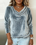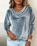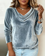 Ruffled V-Neck Long-Sleeved Velvet Top